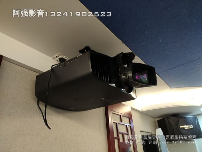 本案装修设计三面墙体采用的中电声韵声学材料,顶部为造型边吊和星空光纤顶,前墙为透声结构下部为一体式设备柜。目前设备安装已经到位,装修进入尾声,局部进行木作装饰即可入场享受影音大餐了。