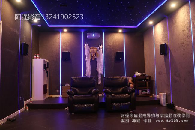 家庭影院装修完毕,等待影音设备安装的画面,浪漫星空顶上面有两只全景声顶置音箱的安装位置。阿强家庭影院导购平台www.av269.com欢迎您光临!
