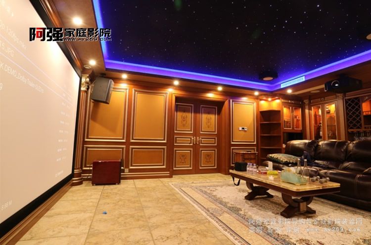 星空灿烂、木纹奢华,整个影音室流淌着大气的风格,体现了米格瑞影一贯的品质追求。当然让业主更满意的是,高端影音设备和精心构建的声学环境,所带来的美妙的观影体验。