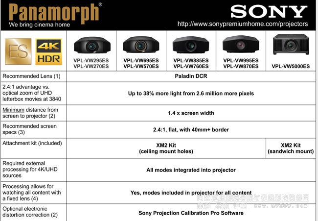 4K版变形镜头Panamorph Paladin DCR垂直压缩式应用于索尼和JVC投影机等投影机,新版本的推出在投射距离上需要更长才可以满足。