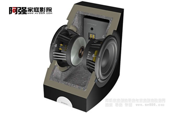 多数情况下,低音炮都只设计了一个低音单元,尤其是小尺寸规格低音炮,但为了适应更大空间、输出更强劲的能量,采用双单元设计的低音炮越发受到用户的青睐。需要注意的是双单元配置的低音炮通常为密闭式箱体设计,毕竟在能量方面该类型低音炮存在“先天不足的劣势”。细分下来,双单元低音炮又存在着“真双单元”和“单元+辐射器”的不同区别。“真双单元”很好理解,即两个实实在在的单元堆砌,目前市面上双单元低音炮有着两种完全不同的设计方案,一种为推挽式设计,将两个单元分别安装在箱体正面和底部,两个单元工作时的相位相反,通过箱体内部的空气压缩产生反作用力,推挽式设计的好处是输出能量强劲,同时还能很好地控制非线性失真。另一种双单元配置方案为双向发声设计,两个单元背对背对称分布在箱体两侧,工作时呈相位相同的特性,提升能量输出是必然的,双向发声的另一好处在于有效抑制了箱体的振动,确保低音炮在大声压输出时能够稳如泰山。