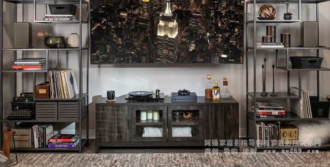 ▲若您的客厅在电视两边有层架,这张图片是蛮好的示范:两支喇叭的号角高音大约与电视机中央同高,这样对白的音像就能「落在萤光幕上」,使音像的高度与画面一致、达到影音合一的目的。