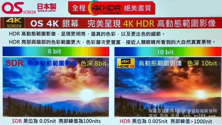 过往顶级银幕所注重的多为细节解析之提升与色彩还原之增进,面对HDR亮部更亮、暗部更沉、明暗阶调更丰富的新需求,势必要有能够更精准控制光线反射状态的突破性新技术。为此,OS Screen经过持续四年的不断努力、克服重重困难,终于在2017年8月研发出HDR「广阶调」银幕HF102,其对比度为OS Screen自家扩散型Pure Mat III(WF302)银幕的十倍!并且由于「明暗交界」更为清晰显著,HF102不仅带来更强烈的明暗对比及光影变化,也能让明暗及色彩阶调层次更为丰富自然,使得相近色彩及物件线条的刻画更精细,即使SDR影像也能有更接近HDR的视觉感受,让1080p BD影像得到更接近4K UHD BD的高精细度与HDR表现!OS Screen HF102银幕推出三年以来获奖无数,也还未有任何其他品牌推出类似製品,由此再次印证OS Screen技术领先群伦。