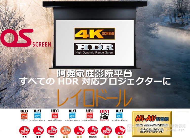 增益值1.0的OS Screen WF302银幕具备毫无癖性且精准的色彩重现能力,从2014年推出以来年年获得日本专业影音媒体的大力推荐。