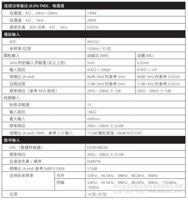 5 个模拟输入,包括可切换的 MM/MC PHONO 输入