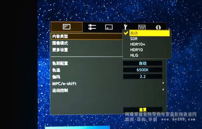 JVC N98不仅支持SDR信号、HLG和HDR10信号,而且同时支持其他竞品投影机一般都不支持的HDR10+,HDR10+可以提供更高范围的动态对比度效果。