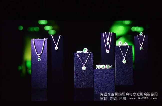珠宝演示片中,在射灯下珠宝有着耀眼反光的同时,背景黑位也稳稳沉的下去,并且背景绿色光带也相当平滑完全没有色带出现,色彩平滑度极好