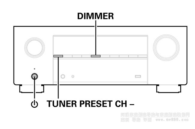 按 Power Button 键并同时按TUNER PRESET CH +和TUNER PRESET CH –键。