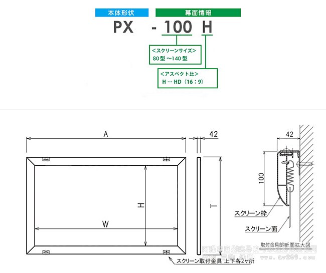 OS PX (固定画框屏幕)只适用纯原装进口幕料,"PX"型号只是一种安装方式,根据您的需求可以选择采用HF102、WF302、WS103、BU302等幕料,目前推荐尺寸在80-140英寸画面,其他定制尺寸可以联系协商。