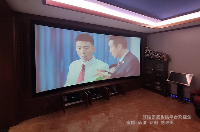 视觉呈现:索尼4K投影机与潘拿摩变形镜头的组合,在弧形透声幕上投射出影院级的宽银幕画质。画面色彩饱和度高,暗部细节清晰,无损画质与无遮挡的声音穿透性,共同构成了顶级的视听基础。