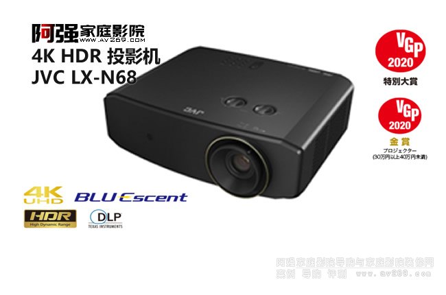 小宙斯LX-N68集JVC投影独家BLU-Escent激光光源、3000流明高亮度、4K HDR、无限动态对比度、镜头大变焦、大范围位移等亮点,完美适应150寸-200寸大屏幕。更多关于JVC N68投影机信息阿强家...
