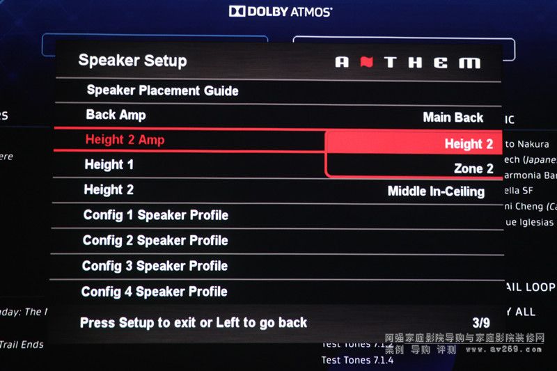在这里会让你选择分配,你愿意将Height 2 AMP用于天空声道还是当做二区的放大器,如果是选Height2就是就用在影院里,这里我选择了用在影院,接下里就可以设置