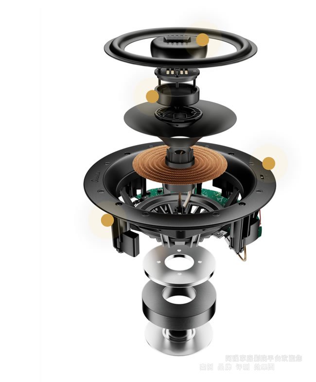 使用 GoldenEar Invisa 850 吸顶式扬声器享受令人惊讶的大、开放的声音和精确的三维成像。