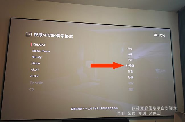 3、家庭影院功放是否支持4K/120P HDR等高品质画质输出,我们以天龙马兰士2025年最新产品为例,你需要在功放设置菜单里面的“视频”》“4K/8K信号格式“选择”8K增强“进行测试
