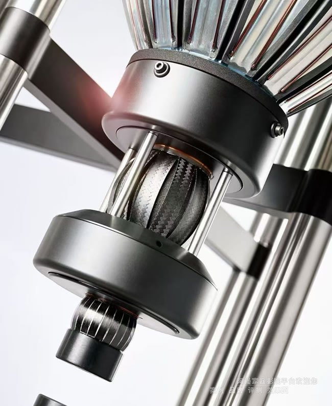 101 E MKII的高音单元采用了24瓣碳纤维条,表面镀上了一层抗共振涂层;中音单元在碳纤维振膜中间还夹了一层阻尼材料,能够承受大功率的冲击。