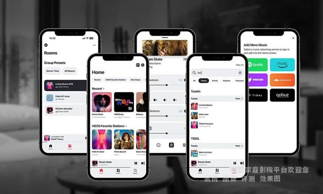 家庭功放的设置相当简单,得益于清晰的说明、前置状态指示灯以及出色的HEOS应用——后者在连接网络和开始时提供逐步和视觉指南。在我的评测中,这台功放搭配了一对Polk Reserve R100扬声器。HEOS应用设置后响应非常灵敏,提供丰富的均衡器、平衡、高通和低通滤波器、DIRAC等多种控制。