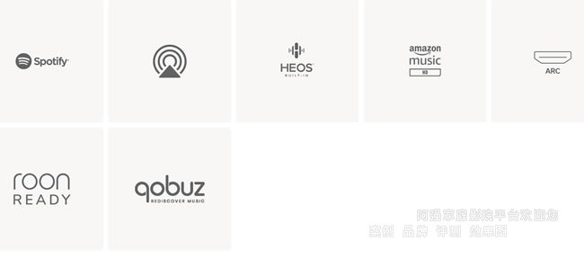Pandora、Spotify、TuneIn、SiriusXM、亚马逊音乐、Tidal、Tidal HiRes、iHeartRadio、Deezer、Deezer HiFi、Mood:Mix、索尼Hi-Res、AWA、QPlay、SoundCloud。