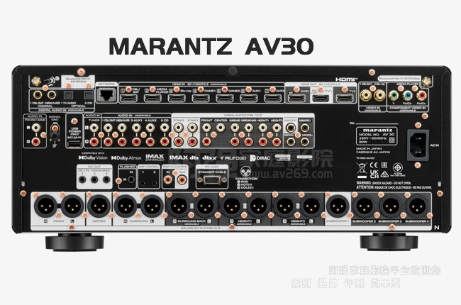 马兰士家庭影院前级处理器AV30 为大型影音室及专属家庭影院系统带来卓越性能与强大功能。这款 11.4 声道平衡式 AV 前置放大器搭载马兰士 HDAM 离散电路,配备 7 路 HDMI 输入接口,每一路均支持 8K 超高清规格。 依托 HEOS™高解析度流媒体技术,AV 30 内置 Audyssey MultEQ XT32 房间校正系统,并可选配 Dirac Live 技术。产品支持杜比全景声(Dolby Atmos)、DTS:X Pro 沉浸式音效、AURO-3D 三维沉浸式音效,提供丰富输入接口及全声道平衡式前置输出接口,含 4 路独立低音炮输出通道。