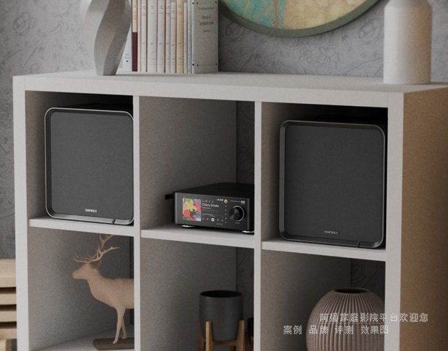 机柜摒弃了典型的窄书架形状,采用了方形1:1的机箱。尺寸为290 x 180 x 290毫米(约11.4 x 7.1 x 11.4英寸),设计强调结构对称性和受控内部体积。全机采用高密度中密度密度纤维板,内部阻尼以减少驻波和箱体共振。哑光黑色PU表面低调实用,避免了增加成本却不提升性能的装饰元素。
