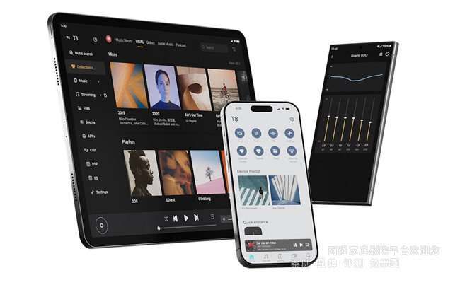 Eversolo 支持 Tidal、Qobuz、Highresaudio 和 Amazon Music 流媒体服务,同时兼容 Tidal Connect 和 Qobuz Connect。对于音乐服务器,T8支持Roon支持和DLNA。新音乐服务的支持持续开发中,这个列表并非全部。