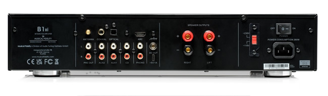 音乐传真B1xi的另一个重要亮点是其灵活性。我们现在早已过了那种预算放大器只提供少量RCA唱头线路输入的时代——就像最初的B1那样。相反,我们正处于一个多源功能的世界。因此,它集成了大量连接功能,包括移动磁铁唱头级、同轴和光纤数字输入、蓝牙以及三个RCA线路输入——此外,它是首款支持HDMI ARC的Musical Fidelity功放。甚至还有RCA前置输出,可以用作前级、双功放或连接低音炮,还有一个5V USB-C电源输出,供外接流媒体使用,如果需要的话。