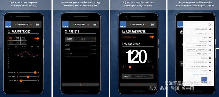 该行业领先的SVS低音炮控制智能手机应用兼容Apple iOS、Google Android和Amazon Fire平台,方便直观地管理所有低音炮控制。