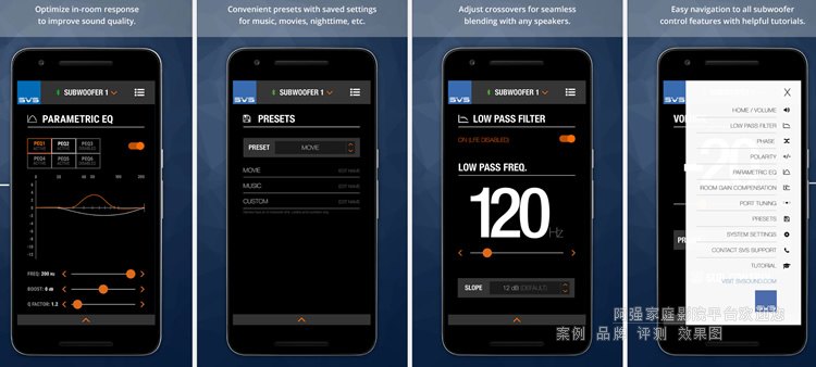 该行业领先的SVS低音炮控制智能手机应用兼容Apple iOS、Google Android和Amazon Fire平台,方便直观地管理所有低音炮控制。
