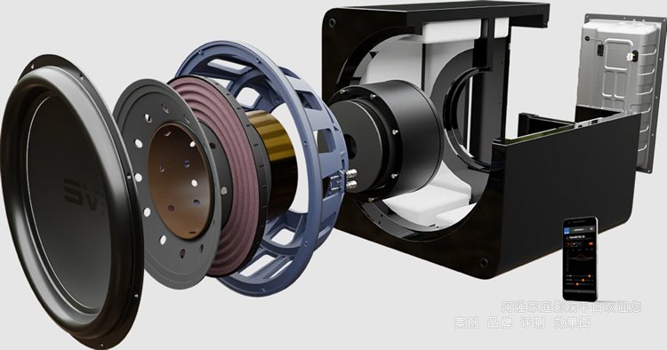 每个功放驱动电机内的双8英寸音圈之一,以实现精准控制,最大化输出到驱动单元的功率