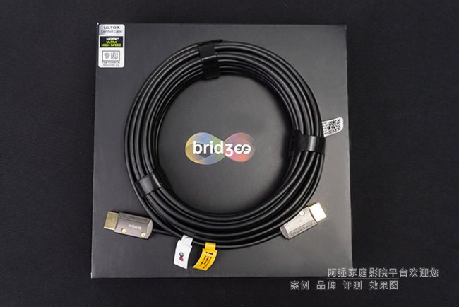 Bridgee桥界Q8K光纤HDMI线,HDMI2.1光纤线,全进口元器件市面上最小一体式接头 (30x18x9mm) ,易穿管,线径4.5mm48Gbps带宽,支持8K@60Hz 4K@120Hz符合HDMI2.1协议,支持eARC/HDCP2.3/动态HDR/QFT/QMS/ALLM/VRR 无需额外供电,最长30米加强DDC通道,兼容无忧黑色锌合金外壳,坚固耐用精密螺丝固定,方便后期维修;奢华精装天地盖包装(30米内)。