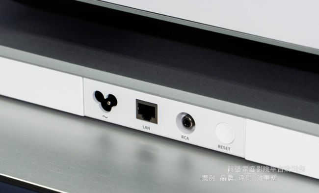 背面的接口区域,左起分别是电源接口、RJ45网口、模拟RCA单声道、重置按键