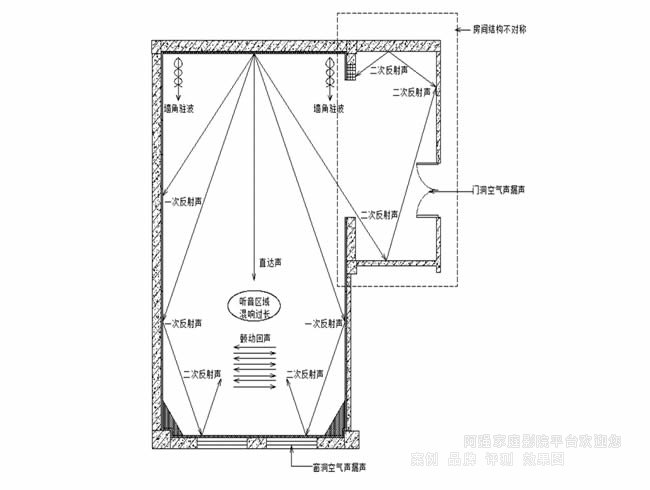弧形房间会造成声能过分集中,使聚集点的声音嘈杂,而其他区域声音较低,扩大了声场不均匀度,严重影院听众的听音条件。