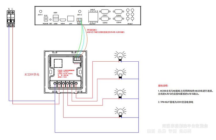 3.灯光的零线不接入TPN-K8/F面板,可直接到强电箱。