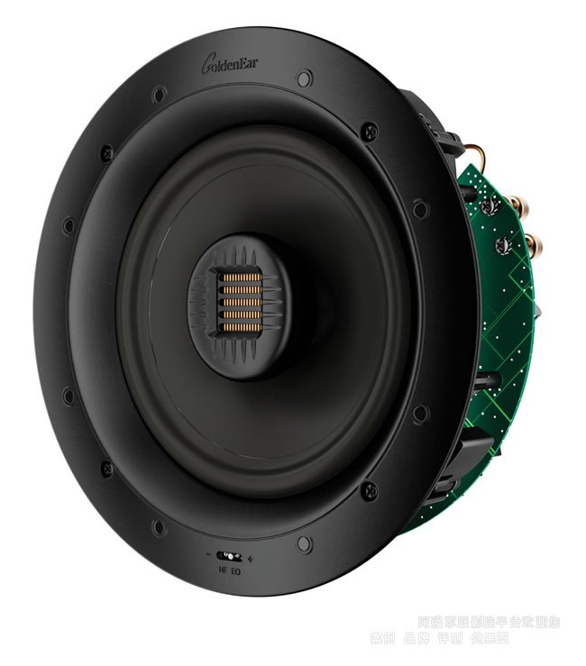 使用 GoldenEar Invisa 850 吸顶式扬声器享受令人惊讶的大、开放的声音和精确的三维成像。
