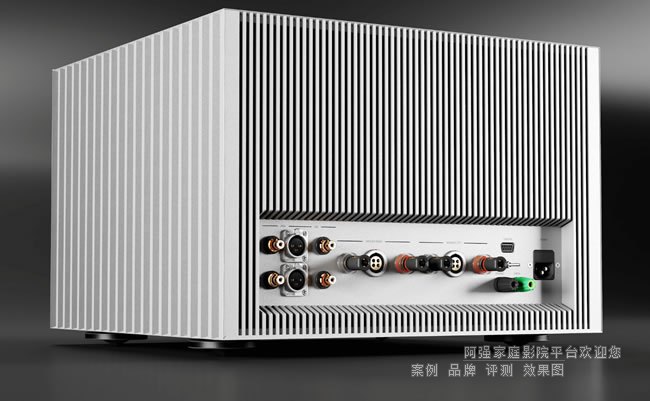 电源供应 • 额定线路电压:115 V 或 230 V,8A 慢熔断器 • 输入电压范围:+/- 10 % • 3200 VA 环形电源变压器 • 电容组:93,600 µF 额定功率消耗 • IEC 62368-1,8Ω 下 1/8 输出功率:335 W 后面板 • 1 x 电源线:通用三插插座 • 1 x 主保险丝(115V 和 230V 8A 慢熔断器) • 1 x 绿黄 AC 接地接线柱(带桥接连接) • 1 x 黑色接地接线柱(带桥接连接) • 1 x 接地/地升开关 • 4 x 输出接线柱(2 x 红 & 2 x 黑;左 & 右扬声器输出) • 2 x 输出 Goldmund 扬声器 4B 型连接器(左 & 右扬声器输出) • 2 x 模拟 RCA 输入(非平衡连接器,左 & 右) • 2 x 模拟 XLR 输入(平衡连接器,左 & 右) • 1 x 数字输入和输出 RCA 连接器 • 1 x RS232 命令连接器 输入 • 模拟输入最大电平(不失真):1 Vrms • 数字输入最大电平(不失真):-6 dBFS