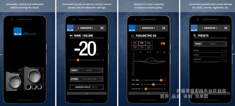 该行业领先的SVS低音炮控制智能手机应用兼容Apple iOS、Google Android和Amazon Fire平台,方便直观地管理所有低音炮控制。