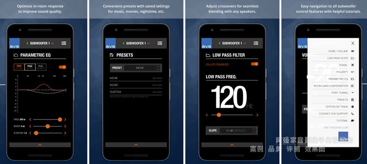 SVS低音炮控制智能手机应用兼容苹果iOS、谷歌安卓和亚马逊Fire平台,方便调校和管理低音炮。