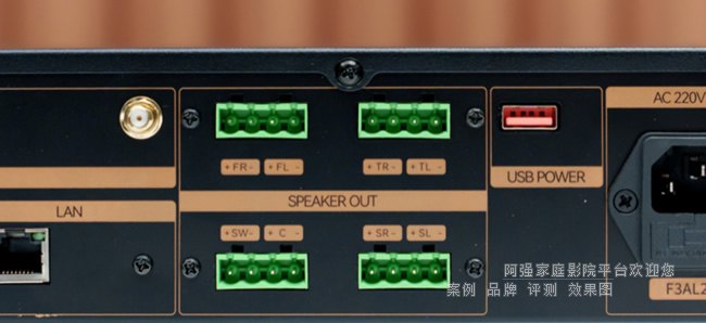 MK800 提供了 8 通道功放输出,包括前置左/中/右、环绕声道、天空声道以及超低音输出。此外,MK800 内置无线发射器,能够扩展两个声道,组成 5.1.4 或 7.1.2 全景声布局。