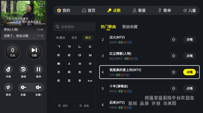 MK800 自身具备强大的媒体播放功能,可通过网络流媒体和本地播放两种方式获取电影、MTV 和音乐。其中,网络流媒体既支持在线播放,也能播放内网共享的影音资源。若希望在线获取内容,环绕声高清电影可使用华数TV,卡拉 OK 曲库可使用欢畅K歌,音乐则可用 QQ 音乐。