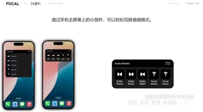 通过FOCAL & NAIM手机App,用户可一键切换音效模式,并支持语音控制,操作高效便捷。苹果用户还可利用主屏幕小组件快速调节,体验更加智能。