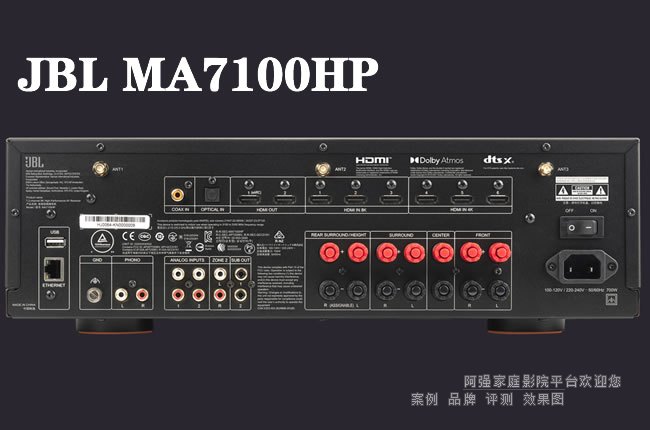 JBL MA7100HP是一款高性能家庭影院功放,采用最新的8K HDMI规格,并原生解码Dolby Atmos和DTS:X的沉浸式7声道音频,带来极致家庭影院体验。无缝集成你的智能电视或投影仪,配备6个HDMI输入和2个输出,以及eARC。这款 MA7100HP 以对音乐和电影的热情设计,能够以真正的高保真让两者栩栩如生。该MA7100HP配备了七个低噪声D类放大通道,实现所有通道的实际功率。除了内置的Moving Magnet唱头输入端用于连接唱盘外,还可通过Apple Airplay2、Google Chromecast和蓝牙AptX Adaptive集成流媒体,立即访问更多音乐内容。