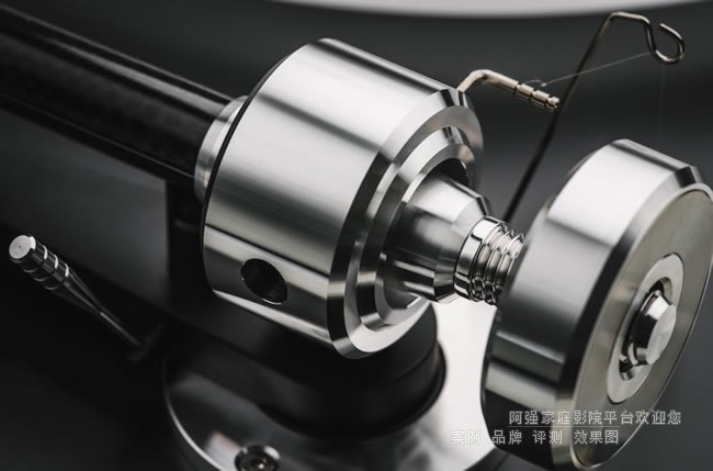 这把10英寸一体成型的碳纤维唱臂有效长度为254毫米,有效质量为16.6克。它支持可调的方位角和垂直跟踪角(VTA)。通过松开两个螺丝,用户可以持续调整唱臂高度,以适应不同琴身高度或不同厚度的唱头。这种调节水平在该价位并不总是标准配置,能够实现更精准的弹头对准。