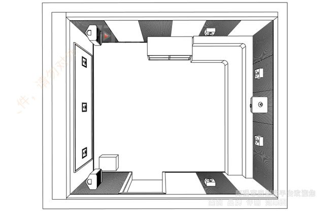 本案采用7.1.2声道布置,前期使用7.1常规声道做影院系统,具体如下: