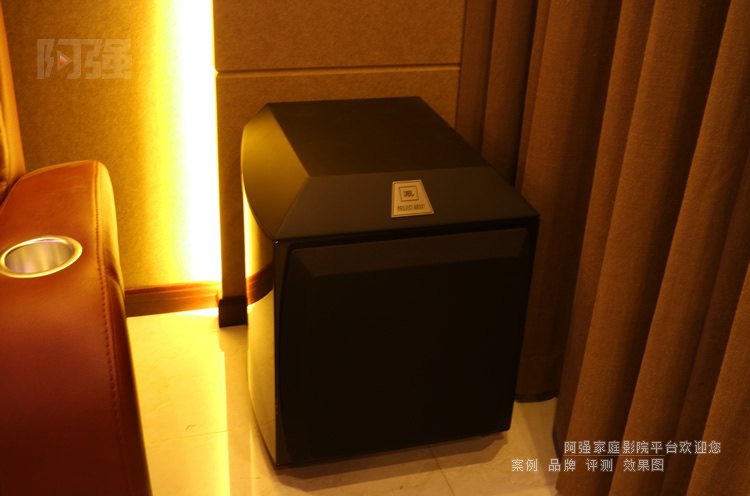 低音部分,由于定制嵌入式音箱在极低频段往往受限于箱体体积,阿强引入了一只JBL极品系列15英寸大口径超重低音炮,作为低频能量的补充。这只大炮摆放在VIP沙发旁,既能提供澎湃的低频冲击力,其独立摆放的形态也与嵌入式系统形成了互补。