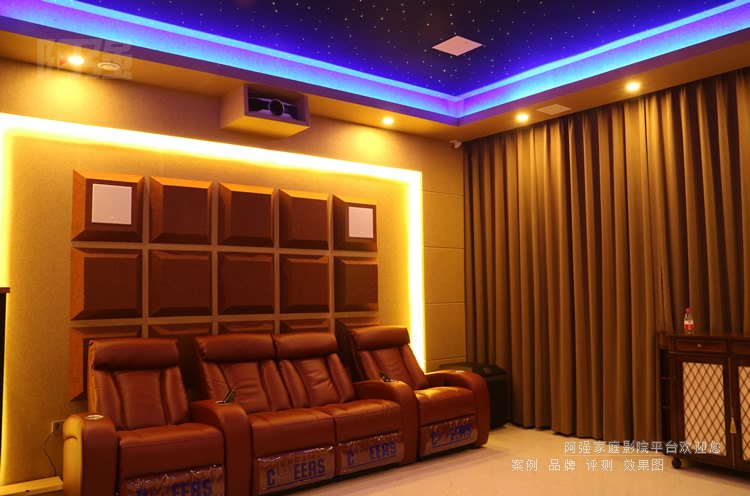 智能控制:整个影院系统通过C4智能控制系统进行统一管理,用户可通过幕布显示、C4专用遥控器、手机APP或墙上面板轻松操控。影音室内的星空顶、灯带、筒灯等照明与影音设备随场景智能变换,营造出不同的氛围效果。